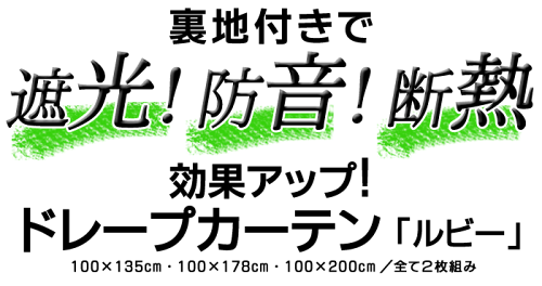 遮光 防音 断熱 効果アップ! 裏地付き 二重 カーテン 形状記憶加工「ルビー」 幅100×丈135cm/2枚組み リーフ柄 唐草模様 葉っぱ柄 グリーン アイボリー 遮光カーテン かーてん カ−テン カ-テン curtain 100×135【13日10時〜15日迄P2倍】