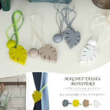 《即日出荷》 フランス製カーテンアクサリー/●マグネットタッセル モンステラ/[1個]フランスアクセサリー [ フランス カーテンアクセサリー タッセル カーテンホルダー インポート マグネット 磁石 リーフ 葉 葉っぱ ボタニカル ホワイト グリーン ベージュ グレー ]